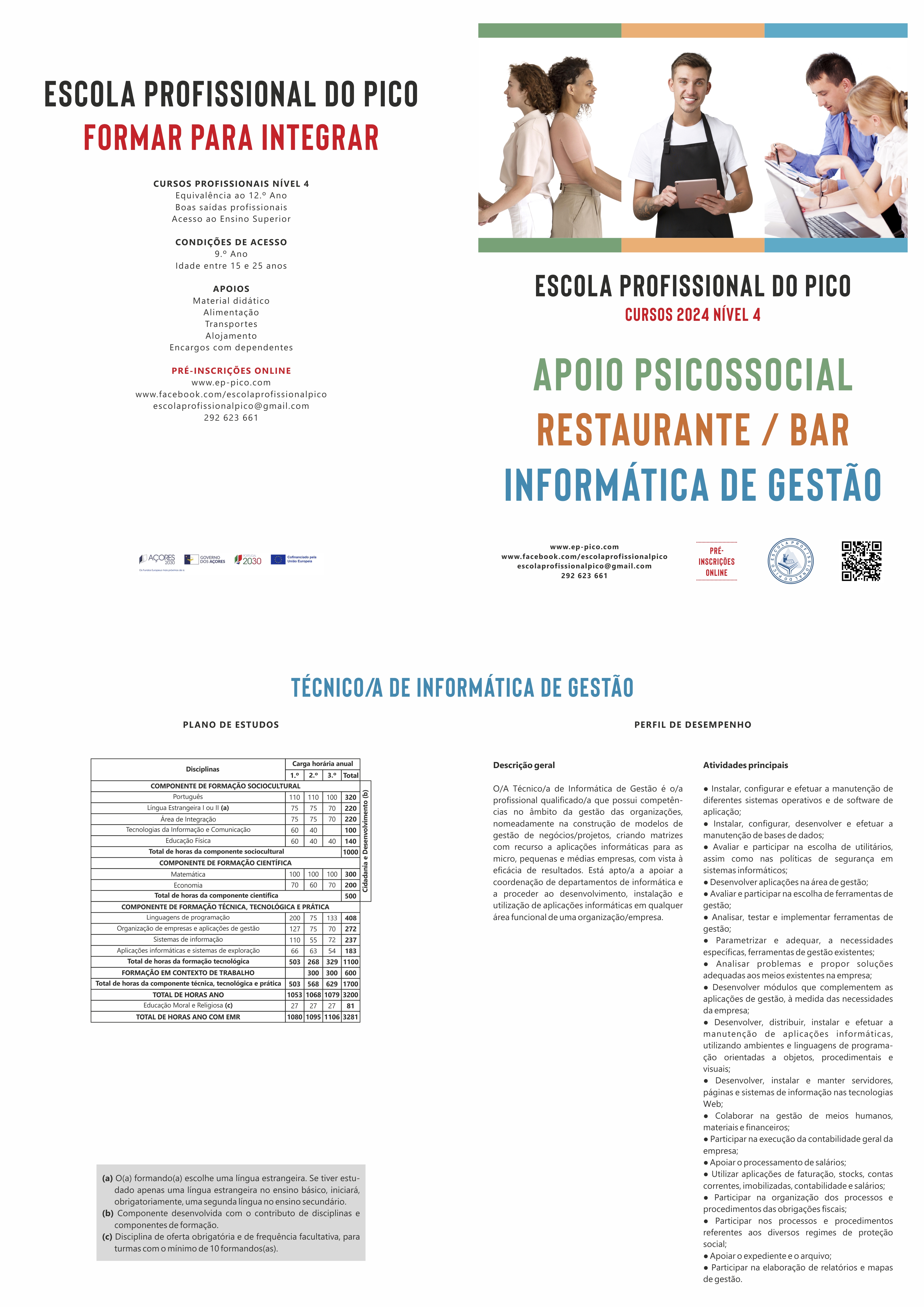 Estes são os novos cursos que a Escola Profissional do Pico tem para ti!