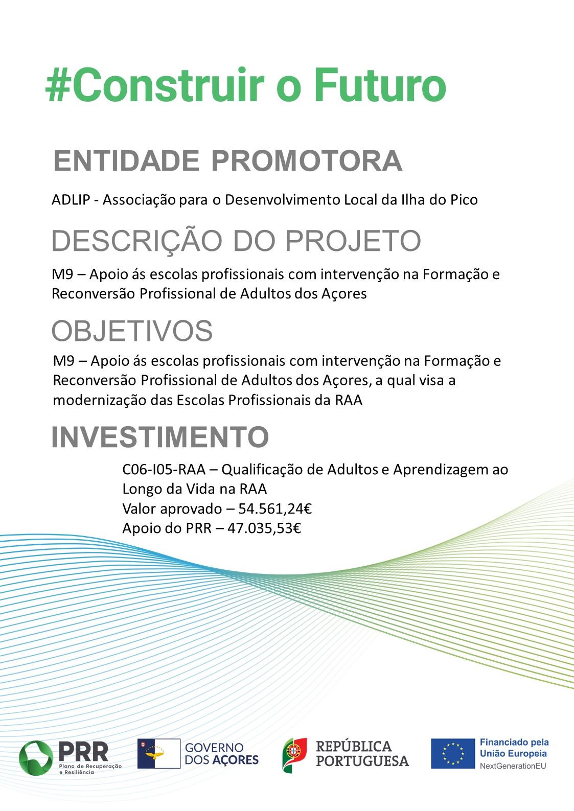 A Escola Profissional do Pico viu recentemente aprovada a sua candidatura ao Plano de Recuperação e Resiliência (PRR), garantindo um financiamento de 54.561,24€ dos quais 47.035,35€ vêm diretamente do PRR. Este montante será destinado à transição digital e à aquisição de equipamentos informáticos, visando modernizar as infraestruturas tecnológicas da instituição e proporcionar melhores condições de aprendizagem.